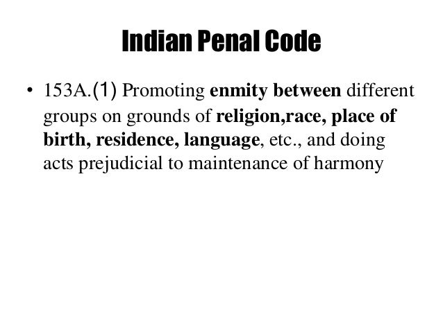 Ipc 153a The Indian Penal Code Ipc - Section 153 a 153 aa of ipc promoting enmity among various casts religious groups.